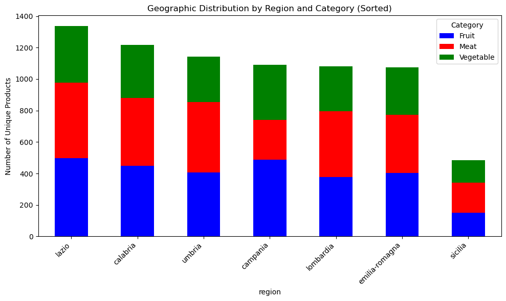 plt.title("Geographic Distribution by Region and Category (Sorted)")